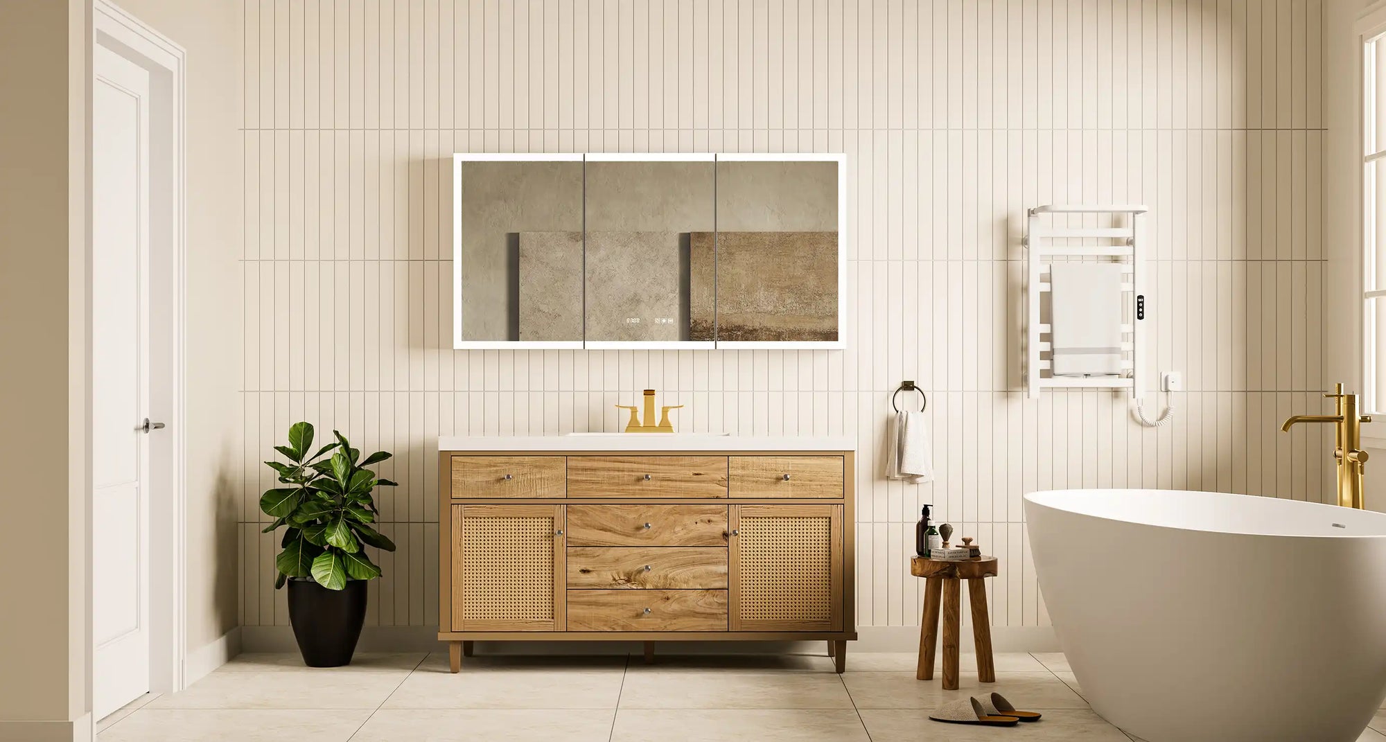 Lumen Series 48x30 Recessed/Surface Mount LED Medicine Cabinet - Outer Glow