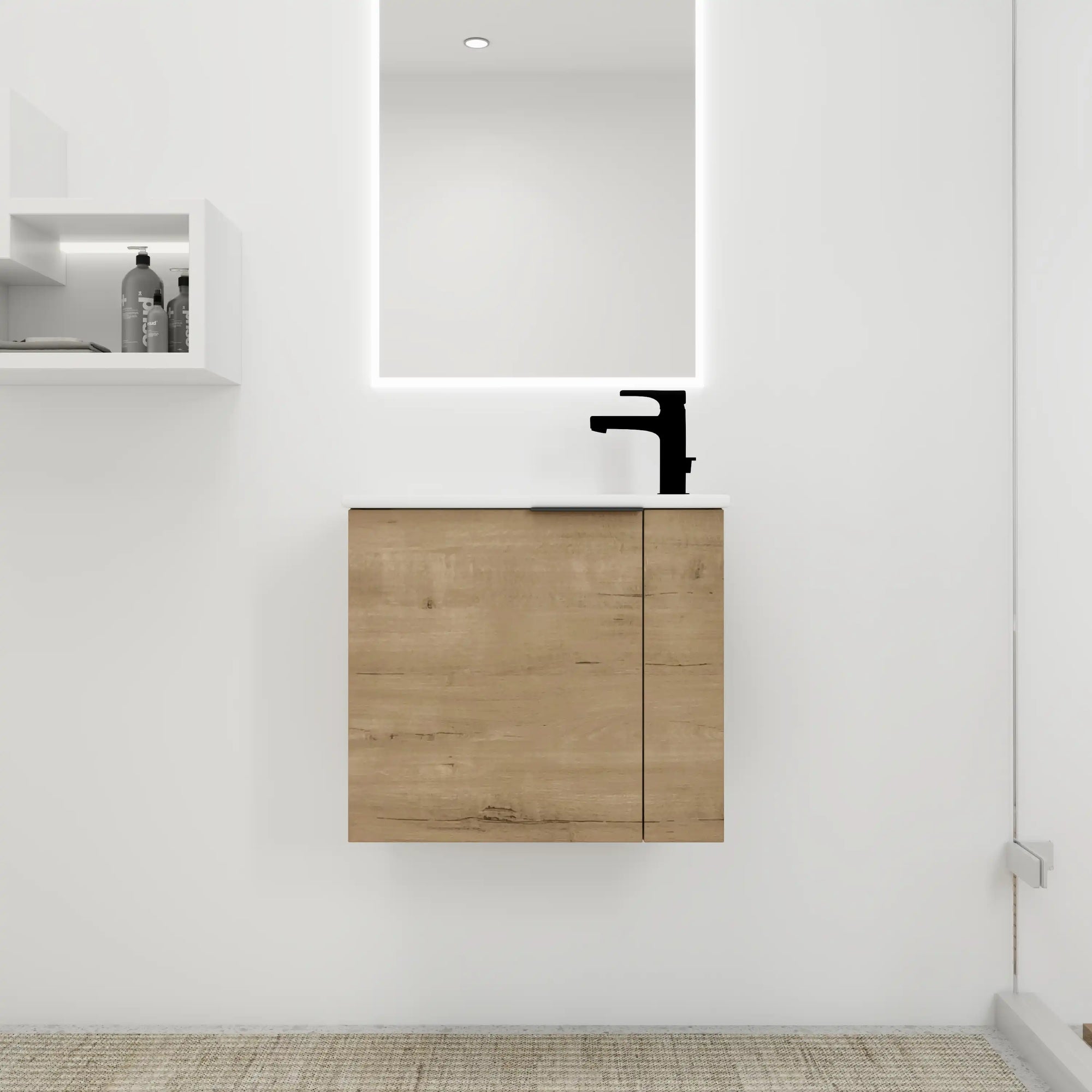 Floating Bathroom Cabinet with Sink & Soft-Close Doors - Ideal for Small Bathrooms color: Imitative Oak | size: 24 inch | combination: Separate Wash Basin