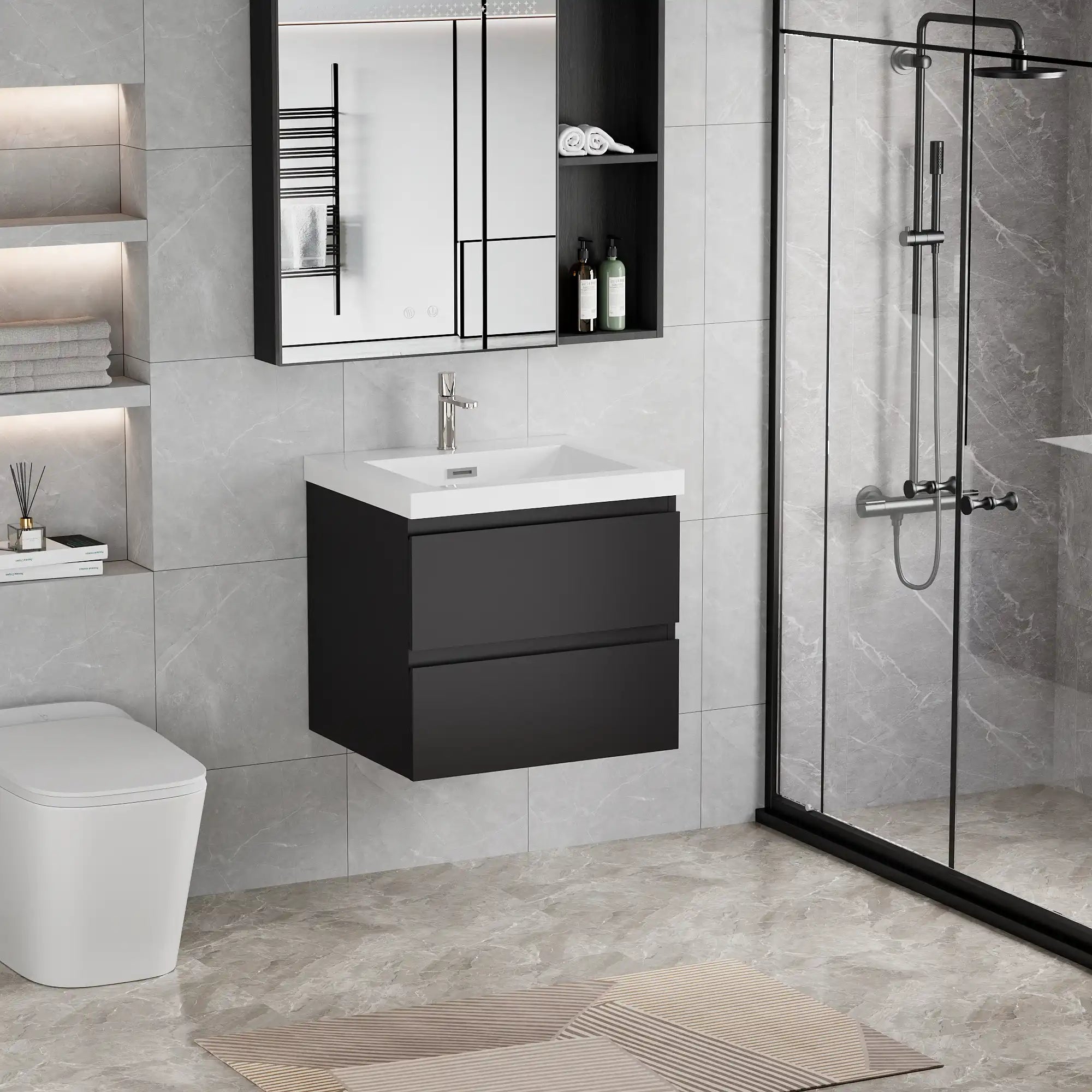 Sophisticated and bold, black vanities add instant drama and elegance to the bathroom. Perfect for making a statement, they pair beautifully with metallic fixtures or light-toned walls for a striking contrast. Built with the same durable craftsmanship and eco-friendly finishes, our black vanities combine strength with undeniable style.