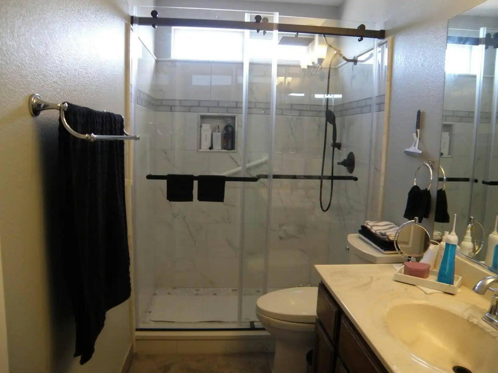 A peaceful shower makes all the difference. With a frameless glass sliding shower door, you get a quiet, modern space that feels open and effortless—perfect for everyday use in a busy family bathroom.