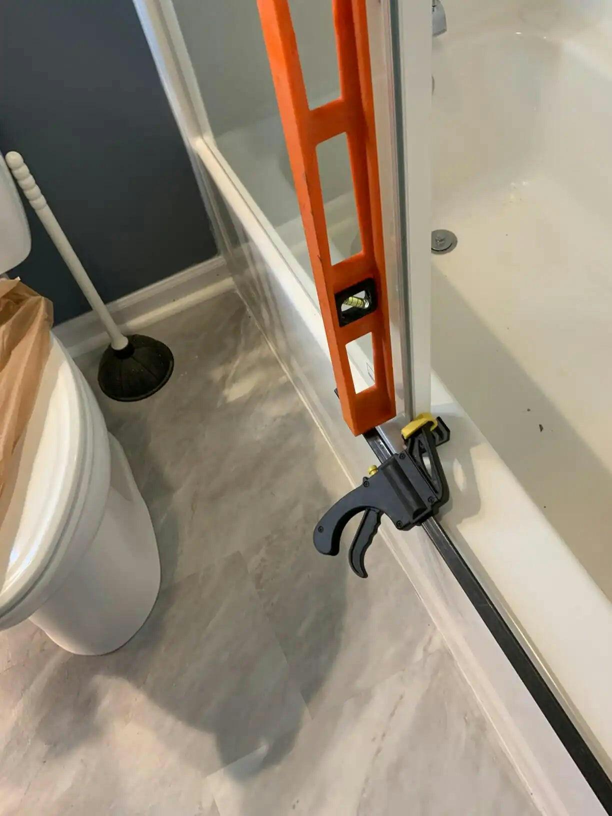 Older homes or showers may not have walls that are perfectly straight. If your wall is plumb, meaning straight up and down, you should have a worry-free shower door installation. If your walls are not plumb, you should seek the help of a professional when installing your shower door. To check if your shower walls are plumb, place your level flat against each shower wall. Look at the bubble on the level and see if it is centered between the two indication lines. If the bubble is centered, the wall is plumb. If the bubble is not centered, angle the level away from the wall until it is. Holding the level in this position, mark the distance between the wall and the level on your measurement sheet. Share these measurements with the professional who will be installing your shower door. Do this at the bottom and top of each wall to ensure they are plumb all the way up. See Image 3 below.